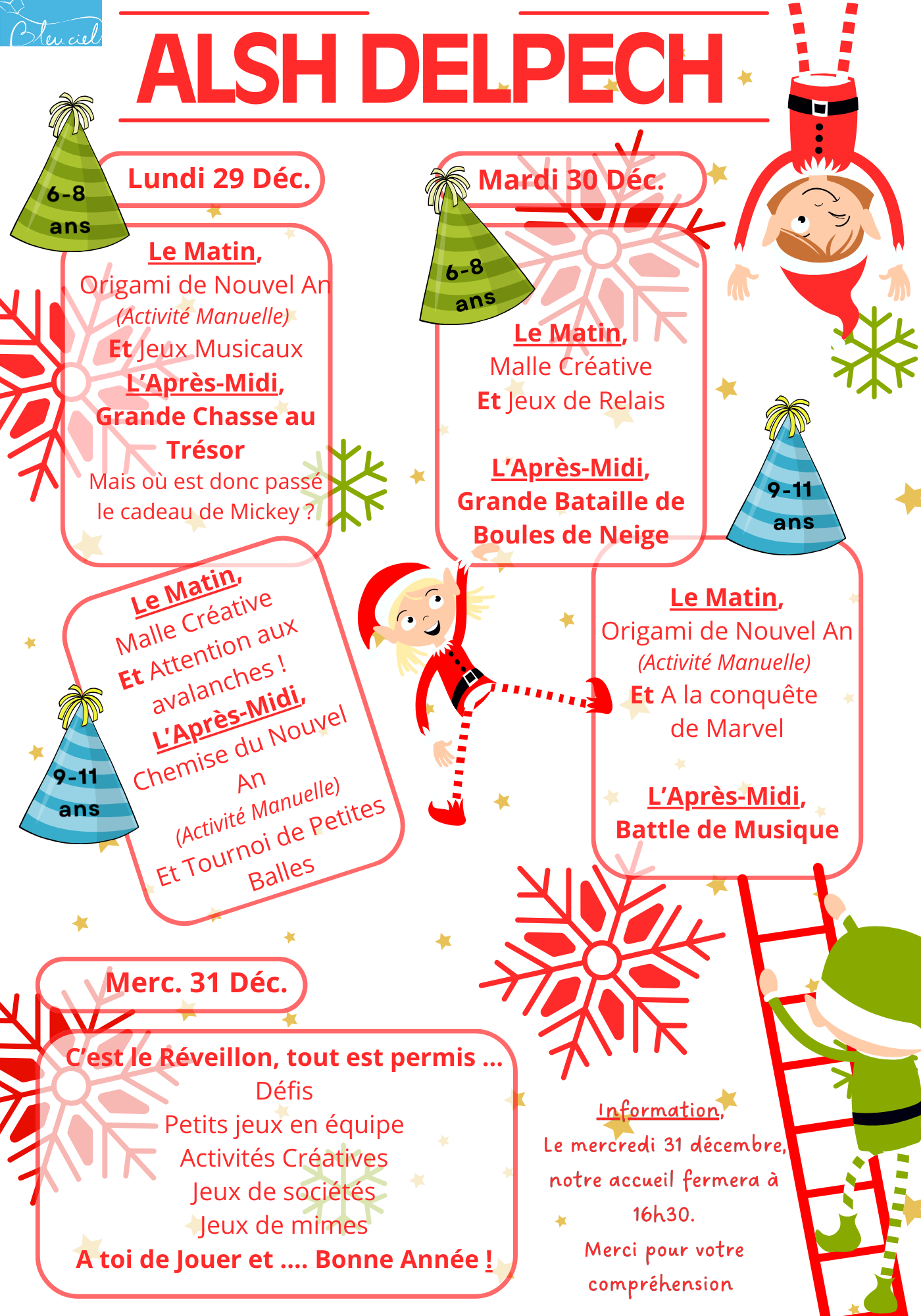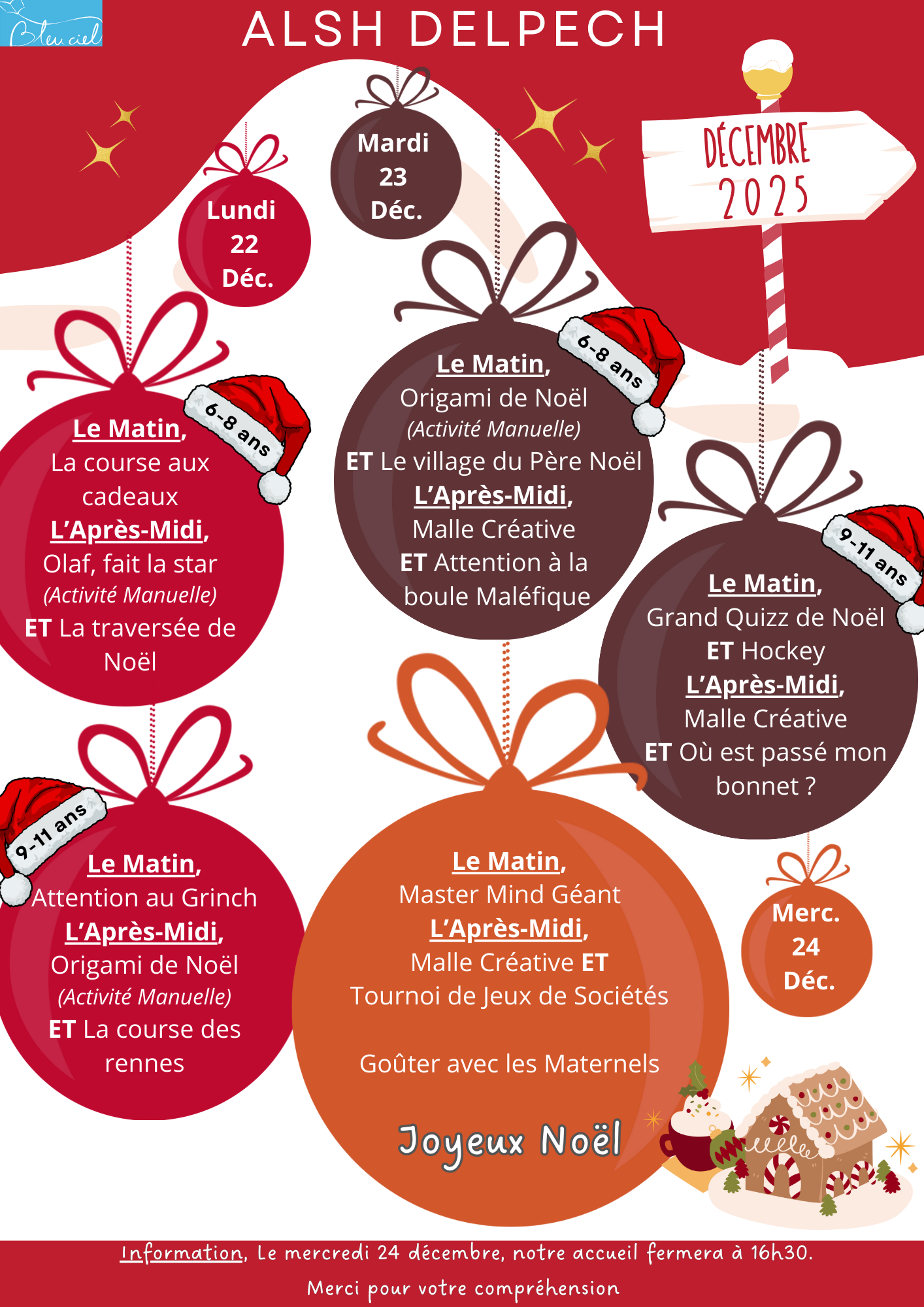 d'activités des vacances de Noël 2025 (Cliquez sur la semaine concernée)
